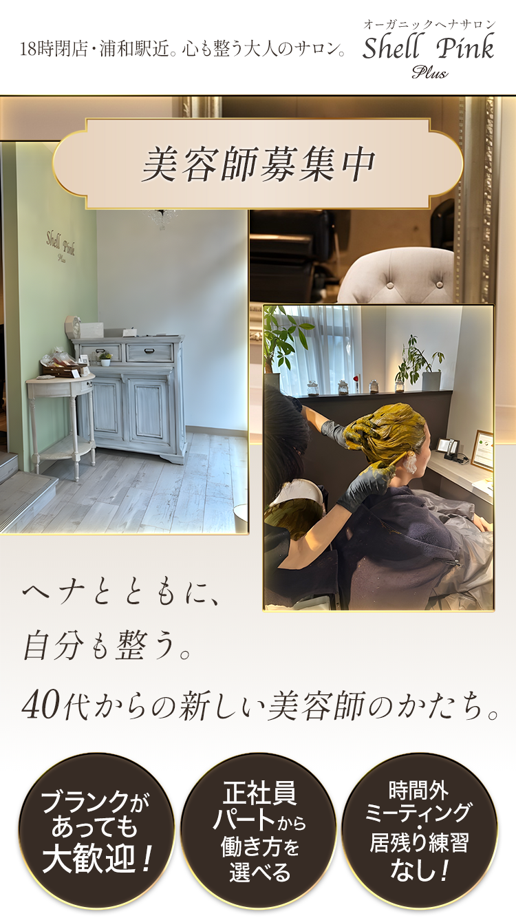 施術者の手肌や身体に優しい最高品質のオーガニックヘナと出会い、2019年5月に 「ヘナサロン シェルピンクプリュス」をスタート。